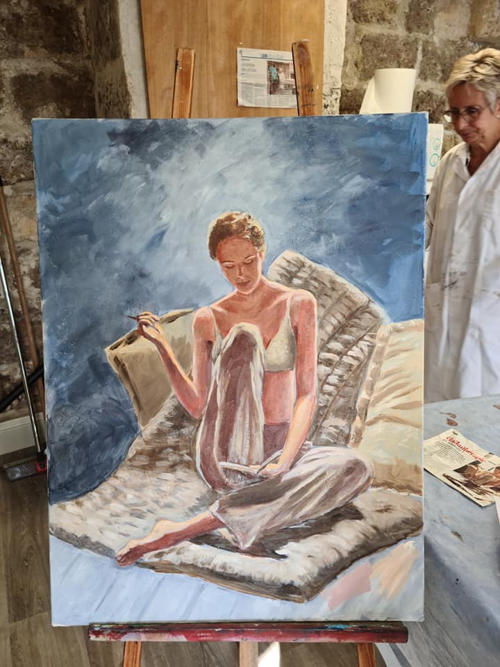 Sont mis à disposition des chevalets pour tous et un vaste espace de travail lumineux que vous partagez avec d’autres élèves, bonne humeur garantie. Appelez-moi, vous allez vous lancer !!! 06.85.21.04.87